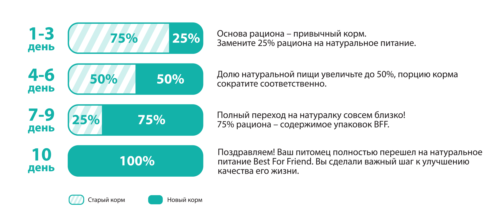 Натуральный корм BEST FOR FRIEND отвечает нормам ГОСТ Р 55453-2022 и рекомендациям международных организаций NRC и FEDIAF – соответствует физиологическим потребностям животных разных возрастов. Корм сбалансирован по всем питательным веществам за счет добавления точечных органических кормовых добавок, высокоусвояемых хелатных форм микроэлементов, специальных витаминно-минеральных комплексов.